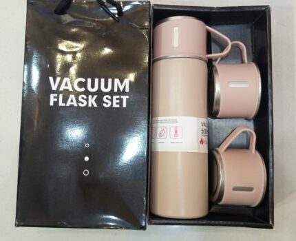 STAINLESS STEEL VACUUM FLASK SET – 500ML WITH 3 CUPS (Gift Box ) (Random color)
