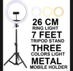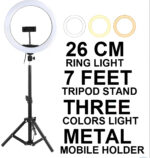 Be the first to review “26CM LED Ring Light with Mobile Holder, 7ft Tripod Stand, 3 Light Colors, Dimmable USB Selfie Ring Light for Videography and Photography” Cancel reply