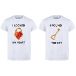 Combo of My Heart & The Key Style White T-Shirt – Romantic & Royal Couple Design!