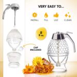 Enjoy clean, controlled pouring with this 100% brand new and high-quality honey dispenser, perfect for honey, syrups, juices, and more. Crafted from durable food-grade plastic, this stylish dispenser includes a glass stand for easy storage and stability.