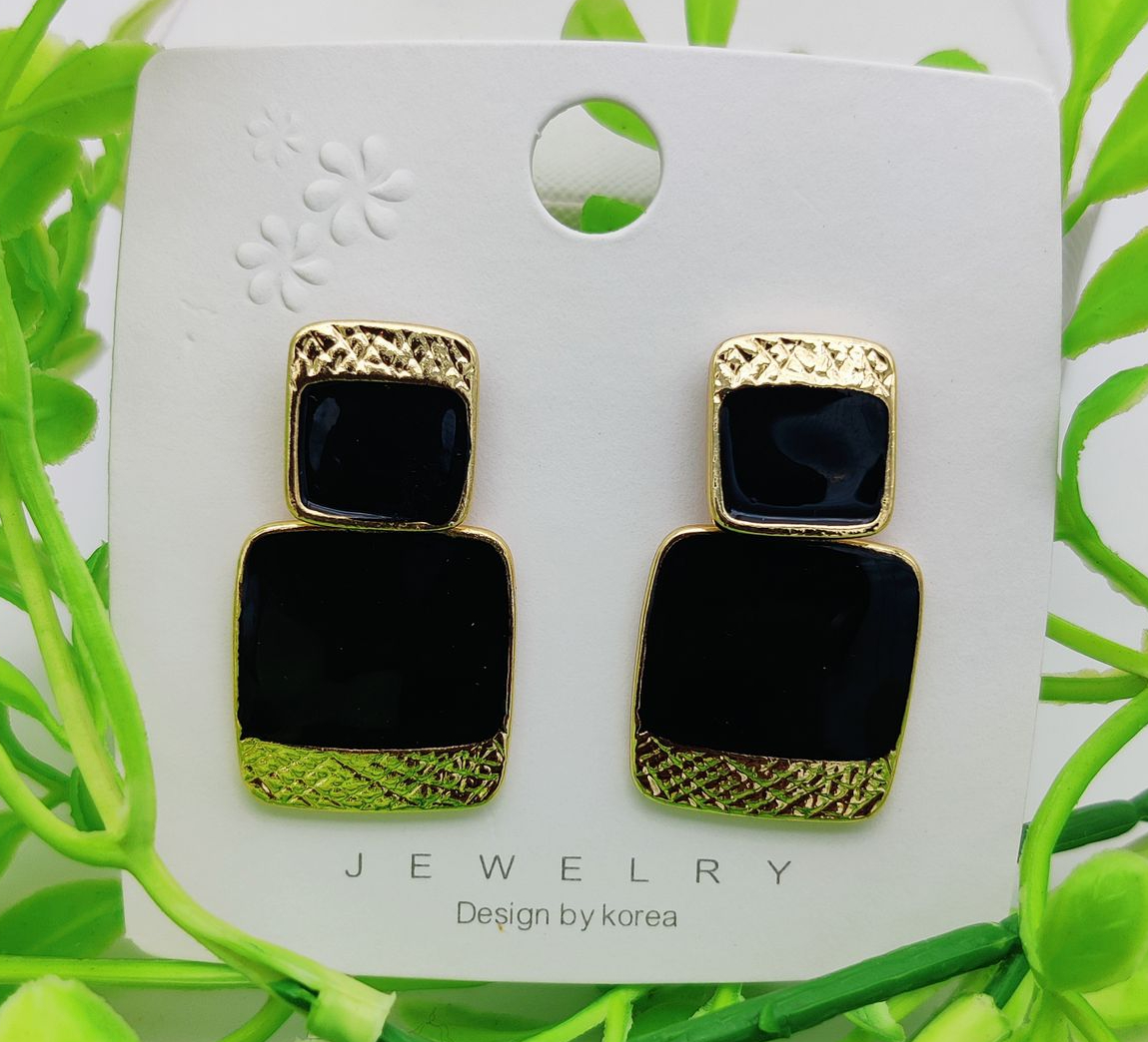 Step into the spotlight with these bold and sophisticated geometric earrings! Featuring a striking black square design accentuated by textured gold detailing, these earrings exude an air of luxury and contemporary charm. Perfect for any occasion, from power meetings to evening soirées, these earrings promise to be your ultimate style statement. Lightweight and comfortable, they pair effortlessly with your favorite outfits for a polished and confident look. 🌟💼💃