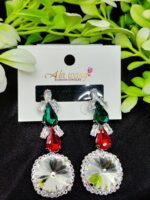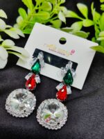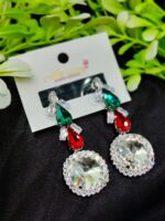 Unleash your inner diva with these radiant crystal statement earrings, meticulously designed to captivate! Adorned with vibrant red and green teardrop gems, a dazzling round centerpiece, and intricate clear crystal accents, these earrings exude luxury and sophistication. Whether it’s a grand event, a festive celebration, or an elegant evening, these earrings will ensure you stand out effortlessly. Lightweight yet bold, they combine comfort with head-turning style.